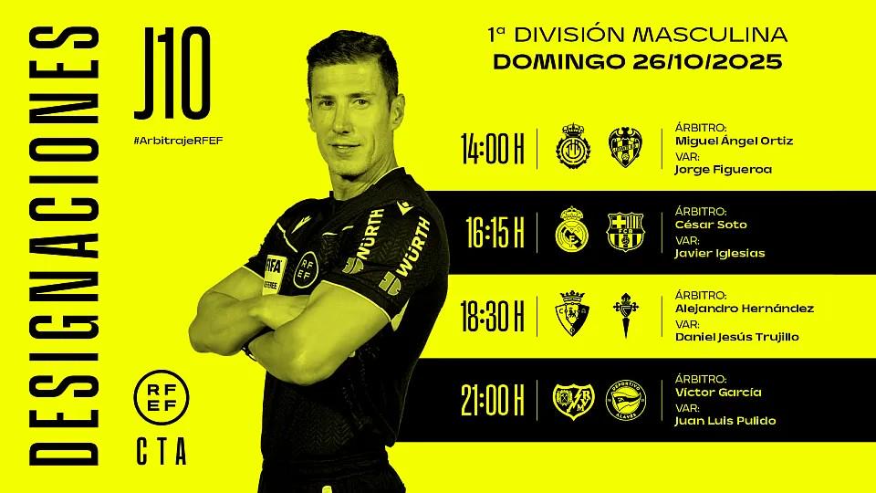 北京时间10月25日,西班牙足协公布了周日的4场西甲裁判人选,索托-格拉多将执法西班牙国家德比。